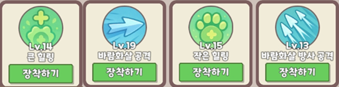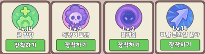 > 나머지 스킬은 가지고 있는 토템류중 보유한걸로 채워주면 됩니다. (어차피 메인은 큰힐과 큰화살 압니다)